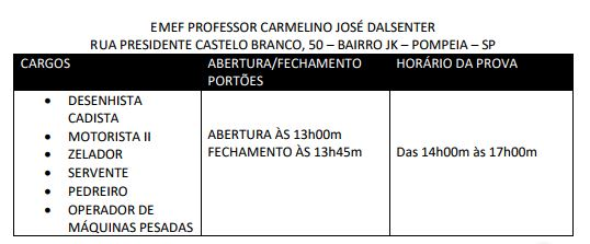 Novas provas do concurso público da prefeitura de pompeia ocorrem neste domingo (7)