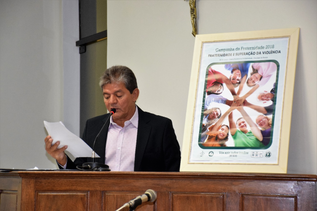 Com o tema “Fraternidade e superação da violência”, a Campanha da Fraternidade 2018, promovida pela Conferência Nacional dos Bispos do Brasil (CNBB), foi lançada em Pompeia em uma solenidade realizada na Câmara Municipal. O vice-prefeito José França representou a administração municipal na cerimônia, integrando a mesa de honra ao lado do pároco Márcio Rios e do presidente da Câmara Municipal, vereador Valdir Cervelin, o Leão.