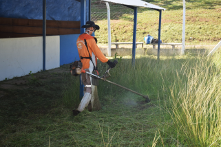 Servidores realizaram a roçagem, capina e varrição do local.