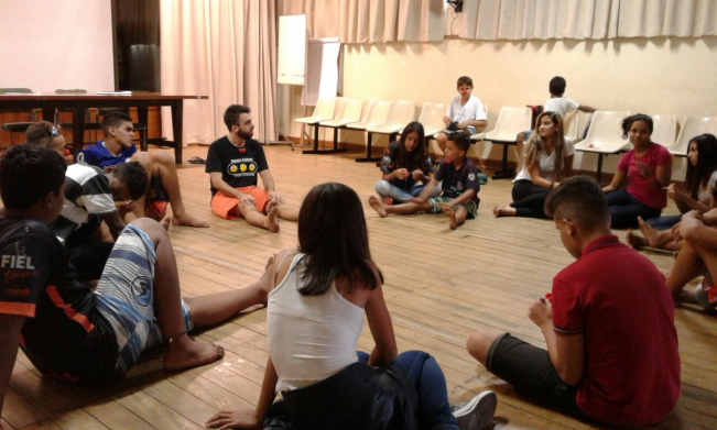 Oficina circense na sala de dança do projeto Oásis