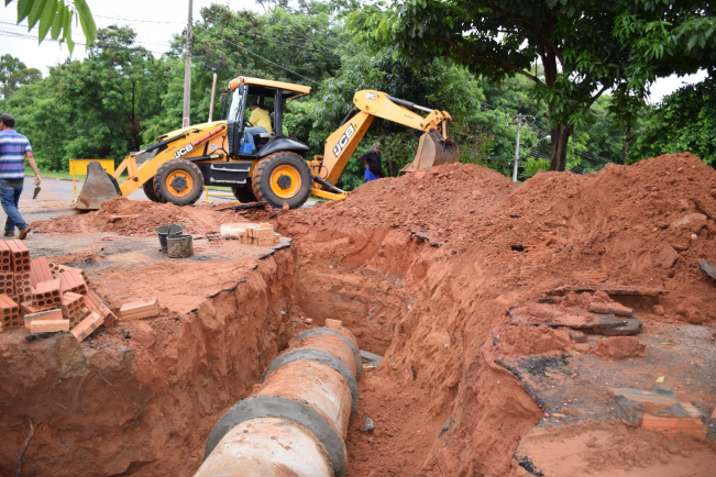 Servidores da Prefeitura mobilizados para realização de grande obra de canalização de água pluvial (Foto: SECOM)