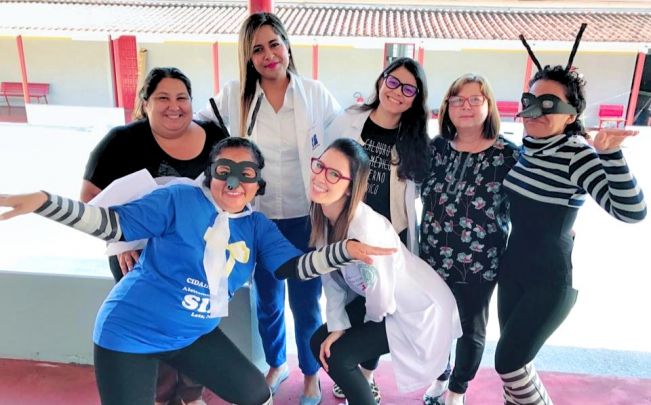 Com o uso de fantasias de mosquito, dentre outros adereços que ilustravam vasos de plantas, pneus, ou garrafas descartáveis, a equipe da Saúde visitou alunos que integram o Projeto Tempo Útil “Evelyn Cristiane Boyan” e tiveram a oportunidade de aprender brincando sobre como eliminar criadouros. Crianças e adolescentes também ouviram sobre a importância de separarem 10 minutos da semana para vistoriarem seus quintais.