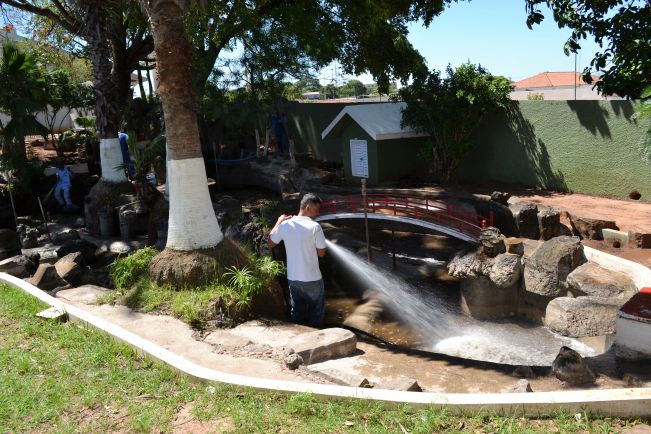 Manutenção do lago da Praça das Cerejeiras