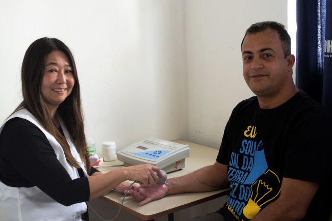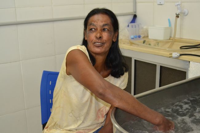 Eva Francisco Dias (59), que trabalha como doméstica, finalizou quinze sessões de fisioterapia nesta semana. Ela ficou com imobilização no antebraço e pulso depois de ter sofrido uma fratura do terço distal do rádio há dois meses e precisou de tratamento especializado para conseguir retomar os movimentos da mão afetada. “Eu tive uma fratura quando caí no serviço. Fiquei dois meses com o gesso, e agora melhorou cem por cento. Não sinto mais dores e recuperei os movimentos. Estou admirada com a atenção que as meninas me deram, pois todas me trataram com muito carinho”, disse.