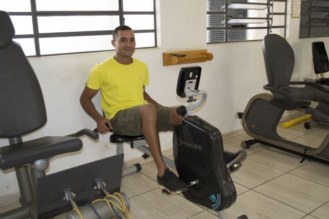Nos aparelhos, estava o competidor em touros Diego Fernando Sandre dos Santos (30), paciente vindo de um pós-operatório devido a uma lesão de ligamento cruzado anterior no joelho. “Meu joelho está bem melhor. Só tenho elogios ao pessoal que têm me atendido. Rompi o ligamento há dois meses e passei por uma cirurgia, mas mesmo antes disso, já estava em atendimento. Tinha um pouco de medo de operar o joelho, mas esses meses que estou fazendo fisioterapia foram ótimos. Na primeira semana pós-cirurgia, eu não conseguia nem pôr o pé no chão. Meu joelho estava muito inchado, mas agora está sensacional. Estou até espantado”, frisa. Ele foi submetido a um trabalho muscular isométrico, ganho de amplitude de movimento e fortalecimento muscular, para voltar a suas atividades.