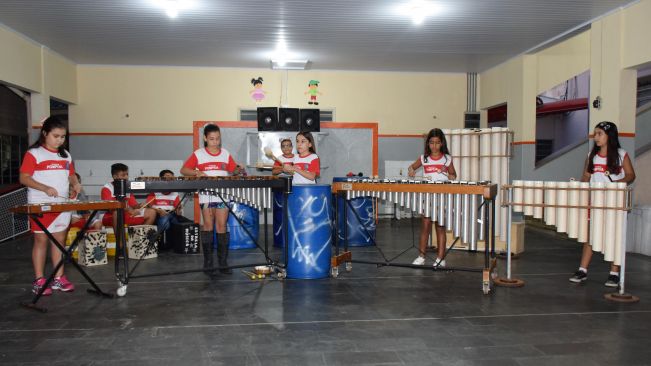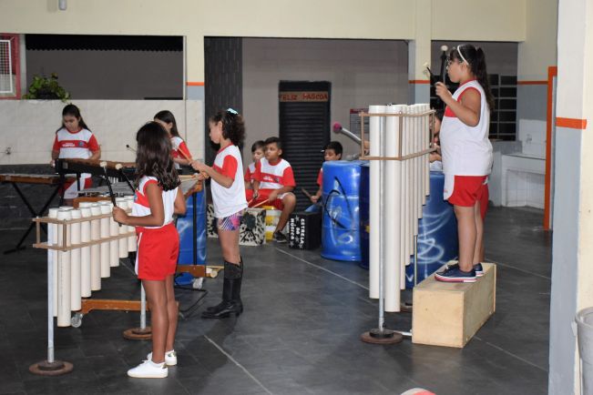Na EMEF “Grupão”, cerca de 200 alunos do 1º ao 3º ano do ensino fundamental têm aulas de música todas as segundas-feiras. Com o sucesso das aulas, no início do ano passado surgiu o projeto de extensão ‘Esse Som É PVC’, com aulas e ensaios no contraturno escolar. Nesta segunda (15), uma banda de 12 alunos, regida pelo professor Augusto Botelho Campos fez sua primeira apresentação para pais e responsáveis.