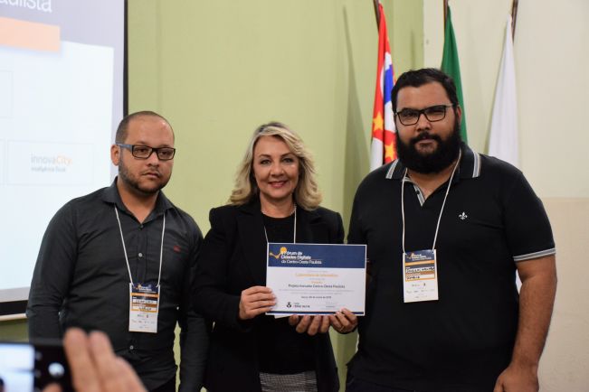 Prefeitos e secretários de 40 cidades do Centro-Oeste Paulista participaram nesta quinta-feira (6) do 2º Fórum de Cidades Digitais da região. A prefeita Tina Januário e o secretário municipal de Tecnologia da Informação, Douglas Mascarin, estiveram presentes para receberem o prêmio de Projeto Inovador pela iniciativa da criação da Escola Municipal de Informática “Ciber Pompeia”. O Fórum é promovido pela Rede Cidade Digital (RCD), uma instituição especializada em tratar de inovações nos governos municipais, em parceria com a Prefeitura de Garça. O evento busca trazer informações sobre o uso das tecnologias da informação e comunicação no desenvolvimento das cidades.