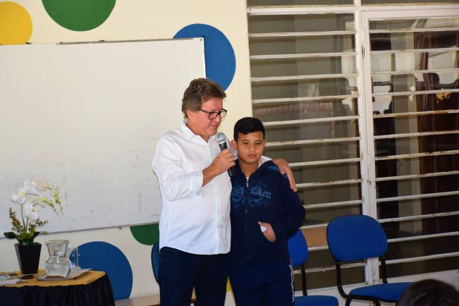 O ex-prefeito Vinho Januário aproveitou a oportunidade para explicar aos alunos quem foi o professor Carmelino José Dalsenter e como foi o processo de construção do prédio da Escola. “Primeiramente, gostaria de agradecer a diretora Suely e toda sua equipe. Eu acho que o brasileiro precisa lembrar mais das pessoas que foram importantes na formação da sociedade. Por isso projetos como este são muito importantes. Os alunos estão pesquisando sobre quem foi o professor Carmelino José Dalsenter. Ele foi meu professor, foi professor de muita gente que passou por Pompeia. E o professor Carmelino também foi advogado, foi comerciante, vereador, tinha um jornal, que hoje é o jornal “A Época”, teve várias atividades no nosso município. Sua esposa, Matilde Jonas Dalsenter, também foi homenageada. Ela era professora de Matemática e Fisíca. Então o que estamos falando para os alunos é que é fundamental a gente conhecer nossas histórias, nossas raízes, de onde viemos. Também estamos conscientizando sobre a concorrência no mercado de trabalho, que é muito grande. Aqueles que estudarem mais, se dedicarem mais, são os que terão mais chances. Nós tentamos fazer com que essas crianças pensem um pouco já em seu futuro, e que eles lembrem as raízes de sua história. Os alunos perguntaram sobre como surgiu a idéia, o que foi gasto, etc. Eu falei que os recursos utilizados na construção da escola Carmelino, assim como a Arena de Esportes & Eventos, a Academia Vida, as casas do projeto Embrião, o asfalto do Primavera, e tantas outras obras que fizemos nos nossos três mandatos, a grande maioria foi com recursos próprios. Essas obras são frutos dos impostos que os cidadãos de Pompeia pagam e que foram utilizados pelo bem da população”, comentou Vinho.