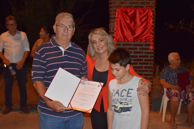 Dezenas de moradores do Loteamento Chácaras Aurora prestigiaram a cerimônia de entrega oficial da pavimentação promovida pela prefeita Tina Januário na última sexta (4). Entre os presentes estiveram autoridades, como o Presidente da Câmara Municipal, Marcio Rogério Caffer, morador do bairro, a vereadora Adriana Borrasca e o ex-prefeito Álvaro “Vinho” Januário. Três famílias, em especial, tinham motivo adicional para acompanhar a cerimônia: na ocasião, a prefeita Tina Januário também realizou a entrega dos decretos que deram as denominações oficiais das antigas ruas A, B e C.