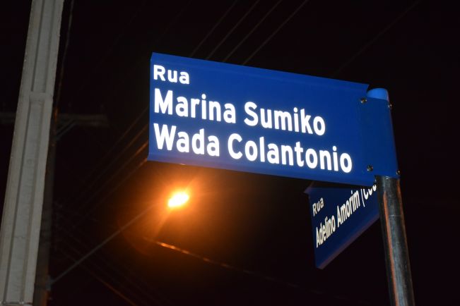 A terceira homenageada da noite foi a saudosa Marina Sumiko Wada Colantonio, cujo nome foi atribuído a anteriormente chamada rua “C” do loteamento pelo Decreto nº 5.361 de 2019. A homenagem foi entregue pela chefe do executivo municipal ao sr. Francisco Colantonio Neto, com quem Marina era casada. Professora do CENE, Marina teve quatro filhos (Ednilson, Suzilene, Francisco e Reginaldo) e quatro netos. Faleceu aos 71 anos deixando muitas saudades. Sua filha Suzilene Colantonio fez uso da palavra recordando que morava no loteamento Chácaras Aurora durante a gestação do seu filho Miguel. “Meu filho nasceu quando morávamos aqui, sem asfalto. Entrei em trabalho de parto quando dirigia sozinha e meu carro atolou. Agora com a pavimentação ninguém mais vai passar por esse sufoco”, comentou bem-humorada.