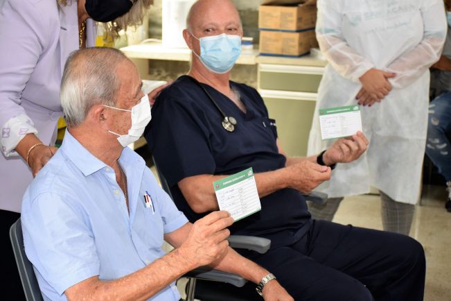 Teve início na manhã desta quinta-feira (21) a vacinação contra a COVID-19 em Pompeia. Os médicos Massao Hayashi e Antonio Mendes Melges Júnior foram os primeiros vacinados da cidade. E foram vacinados ao mesmo tempo. O Dr. Massao tem 76 anos de vida e 45 de Santa Casa. O Dr. Melges tem 69 anos e 40 de Santa Casa. Profissionais muito competentes e bastante queridos pela comunidade, eles fizeram questão de continuar na linha de frente, com muita coragem, trabalhando sem parar, desde o início da pandemia, mesmo sendo parte do grupo de risco. “São dois símbolos da nossa luta contra o novo Coronavírus e do início da superação dessa fase tão difícil das nossas vidas. Muito obrigada, Dr. Massao, Dr. Melges e todos os profissionais da Saúde de Pompeia! São heróis!”, enalteceu a prefeita Tina Januário.