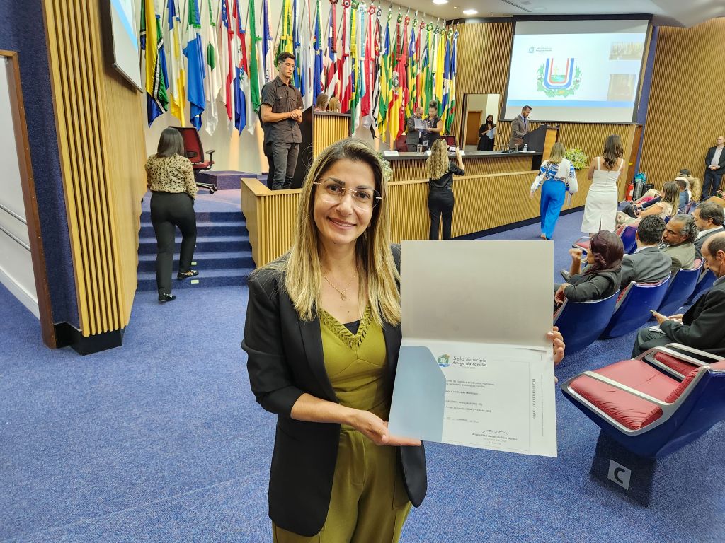 O Ministério da Mulher, da Família e dos Direitos Humanos realizou na quinta-feira, dia 8 de dezembro, a solenidade de entrega das concessões do Selo Município Amigo da Família (SMAF), edição 2022, para 28 municípios brasileiros, dentre eles Pompeia. A Secretária Municipal da Família, Eliana Marques, o Presidente do Conselho Municipal da Família, Sr. Jorge Nishimura, e o vice-Presidente, sr. Alberto Issamu Honda, representaram o Município na cerimônia, que foi prestigiada por autoridades nacionais, como o Senador Wellington Fagundes (PL), os Deputados Federais Enrico Misasi (MDB) e Alan Rick (UB), além da Secretária Nacional da Família, Angela Gandra Martins e da Ministra Cristiane Britto, que compuseram a mesa de honra.
