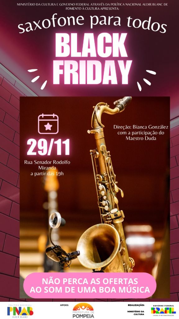 As ações são contempladas pela Lei Aldir Blanc que é uma iniciativa do Governo Federal, através do Ministério da Cultura, com apoio da Prefeitura de Pompeia.