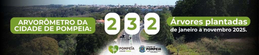 A Prefeitura Municipal de Pompeia segue avançando em suas ações voltadas à preservação ambiental e à construção de uma cidade cada vez mais sustentável. Para tornar esse compromisso ainda mais transparente, a Administração apresenta o Arvorômetro, um indicador que registra o crescimento da arborização no município.